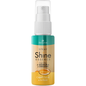 Shine Essence contiene olio di mandorla, noto per le sue proprietà idratanti, e cheratina idrolizzata, che rinforza e disciplina i capelli.
